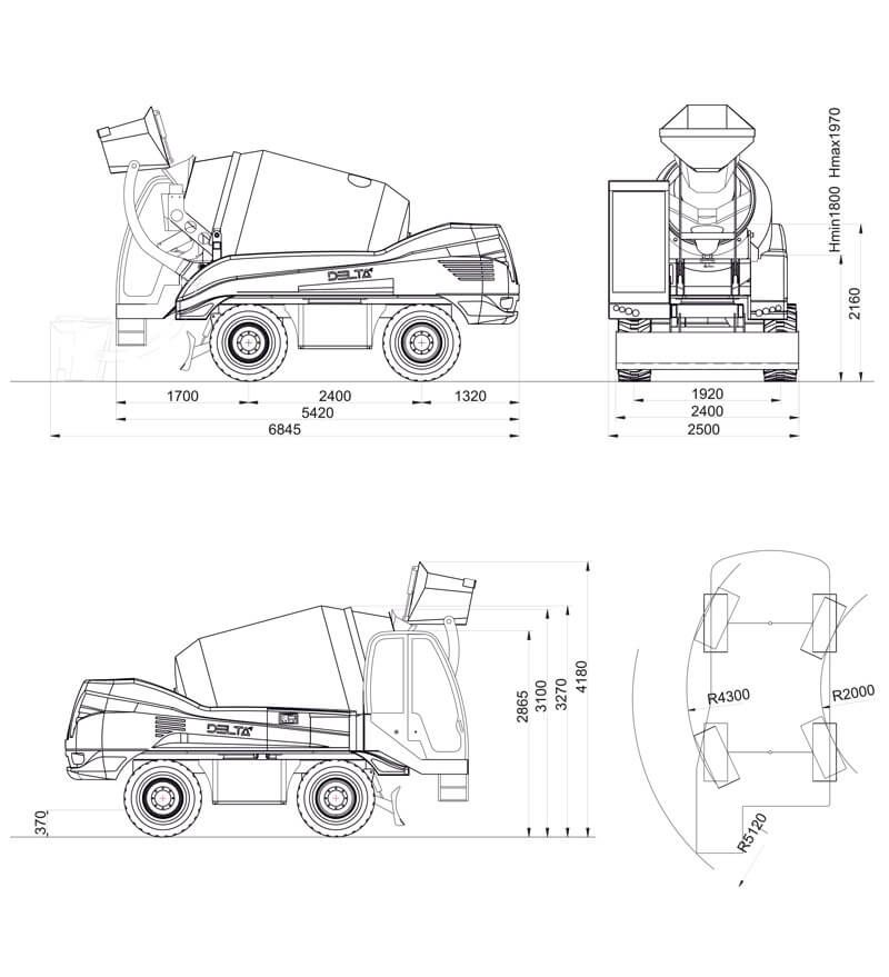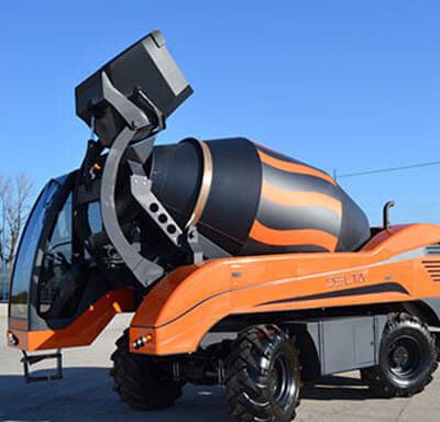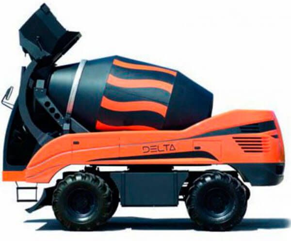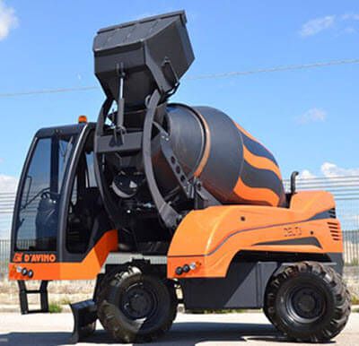 Self loading concrete mixer – Net output 4,5 m3 (S1 class) – Load and cast through the full 360° (continuous rotation) – 4 wheel driving and steering – Articulated bucket integral with rotating frame – Cab integral with 360° rotating frame (continuous rotation).
