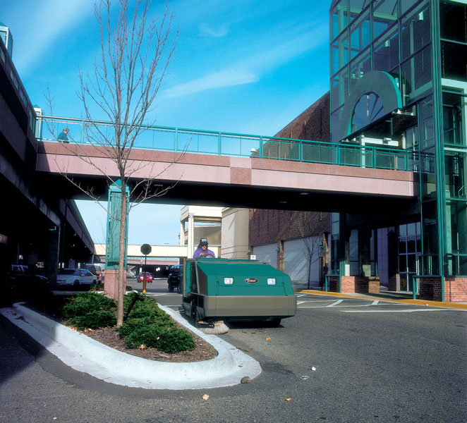 Tennant’s 800 Industrial Ride-on Sweeper features a wide cleaning path and large capacity hopper to capture everything from cement dust to heavy debris.