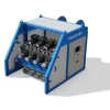 Rotating compaction screws press the concrete into the desired shape, supported by the dual vibration system which combines normal and high frequency. The particularly wear-resistant materials and the legendary reliable mechanics enable production speeds of up to 2.4 m/min depending on the product type.