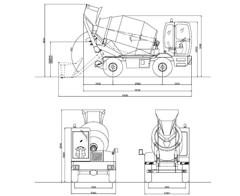 Type Perkins 1104D – 44T , 4 cyl .; pot . Max 74@2.300 kW @ rpm / min ; Hydrostatic transmission ; 4 steering wheels ; Reversible driving