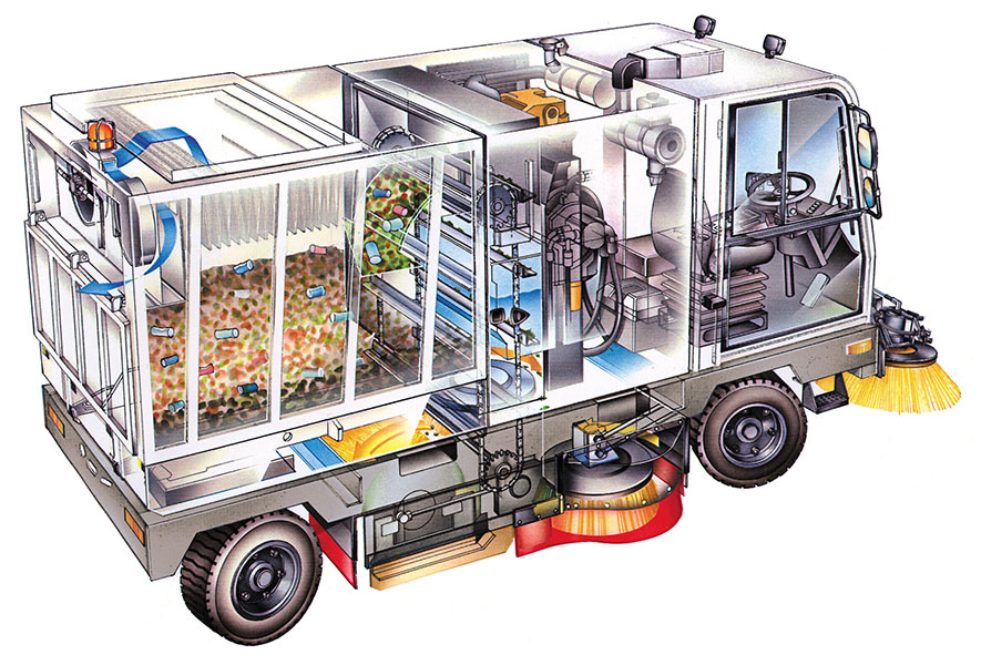 Tennant’s Sentinel high performance outdoor rider sweeper easily maneuvers in harsh environments while reducing dust with all-weather dry dust control.